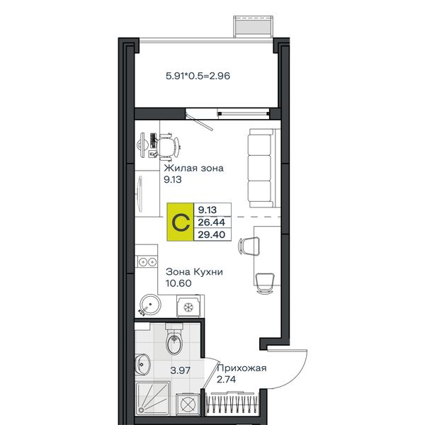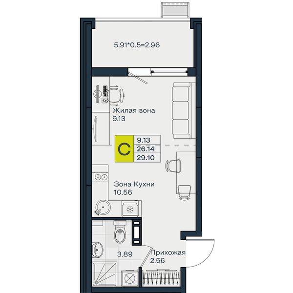 Студия — 29,1 м²