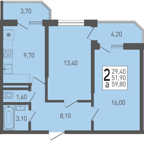 2-комнатная — 59,8 м²
