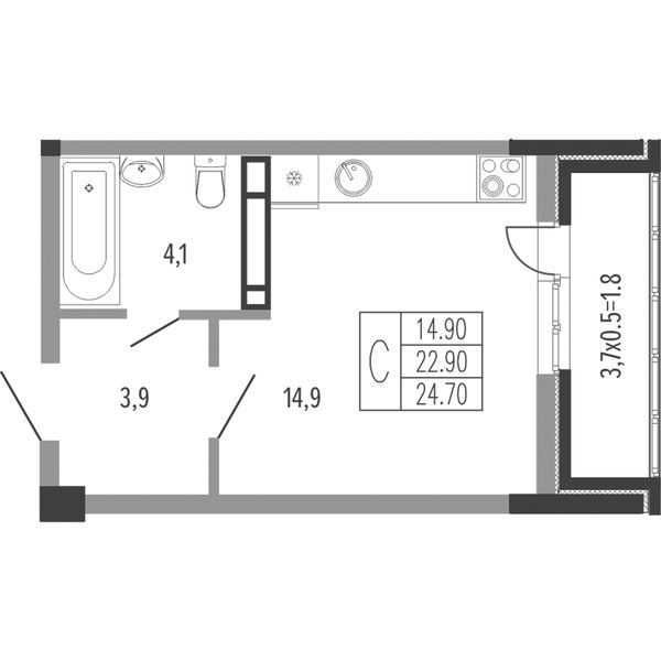 Студия — 25,7 м²