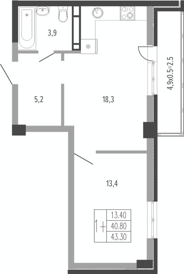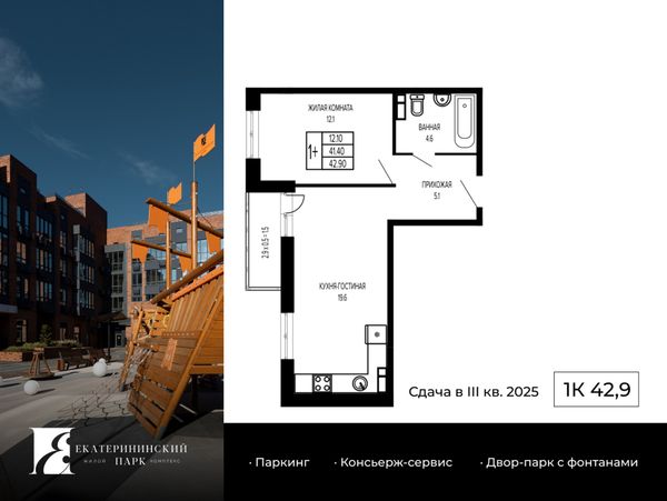 1-комнатная — 40,7 м²