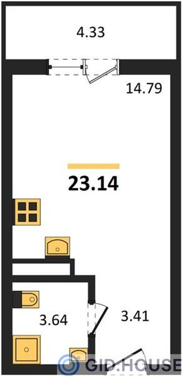 Студия23,22 м²Краснодарский край, Краснодар, Прикубанский округ, ​КГАУ учхоз Кубань, 2 лит 2