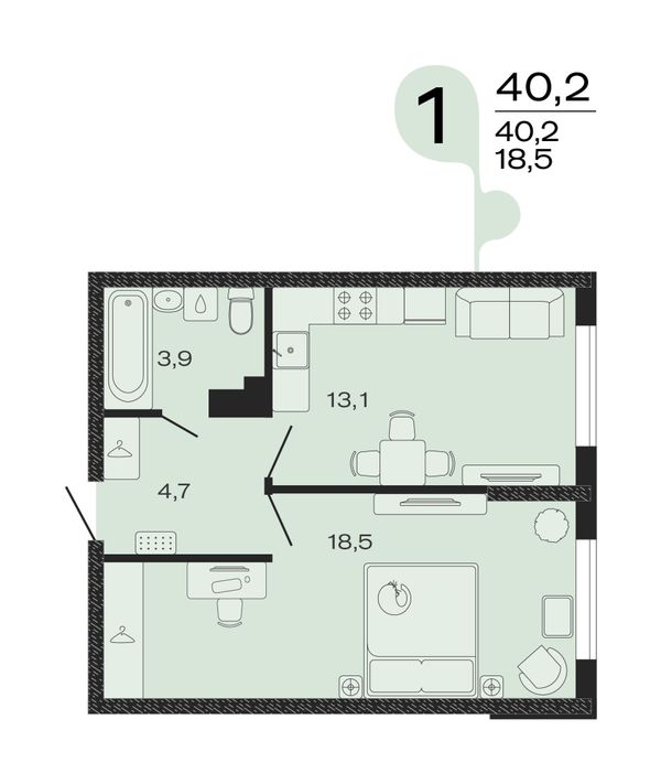1-комнатная40,2 м²Краснодарский край, Новокубанск, Берёзовая улица