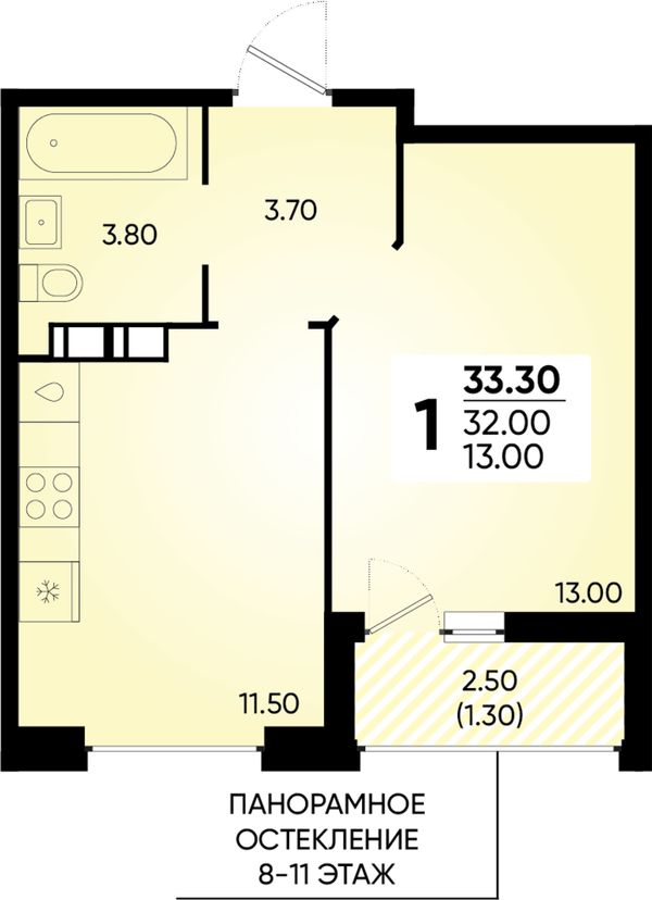 1-комнатная — 33,3 м²