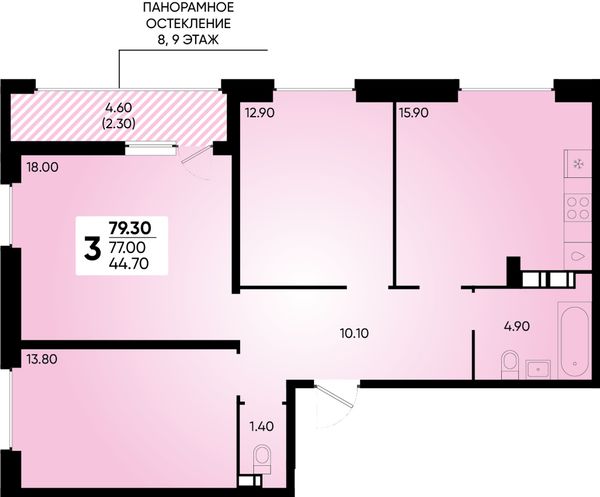 3-комнатная79,3 м²Краснодарский край, Краснодар, Прикубанский округ, улица Наставников, 12к1