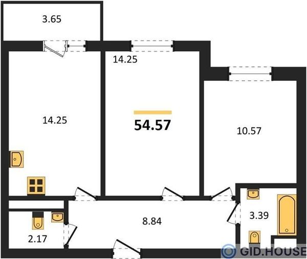 2-комнатная — 54,57 м²