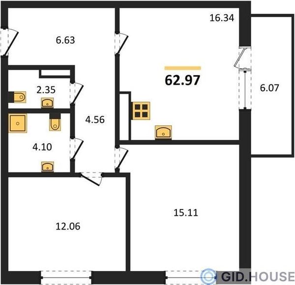 2-комнатная — 62,97 м²