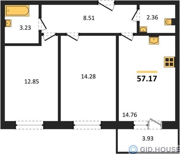 2-комнатная — 57,17 м²