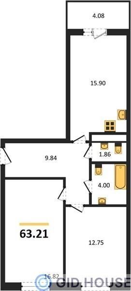 2-комнатная — 63,21 м²