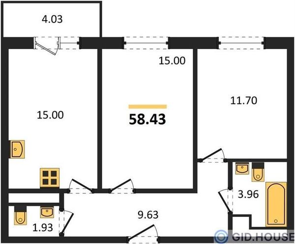 2-комнатная — 58,43 м²