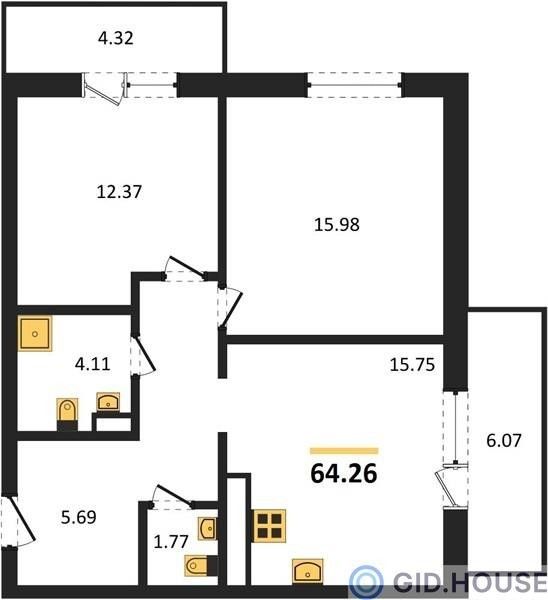 2-комнатная — 64,26 м²