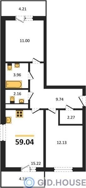 2-комнатная — 59,04 м²