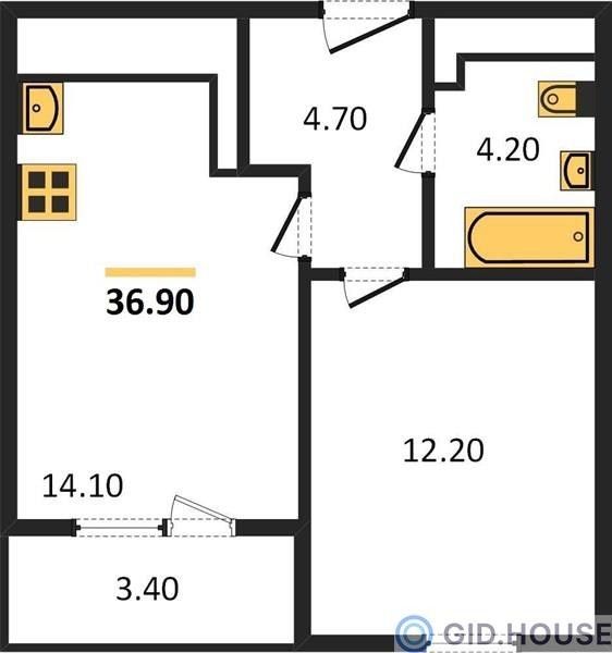 1-комнатная — 36,95 м²