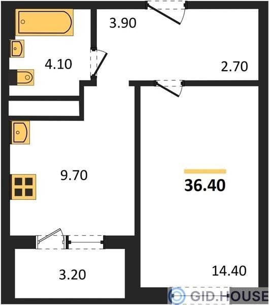 1-комнатная — 38,9 м²