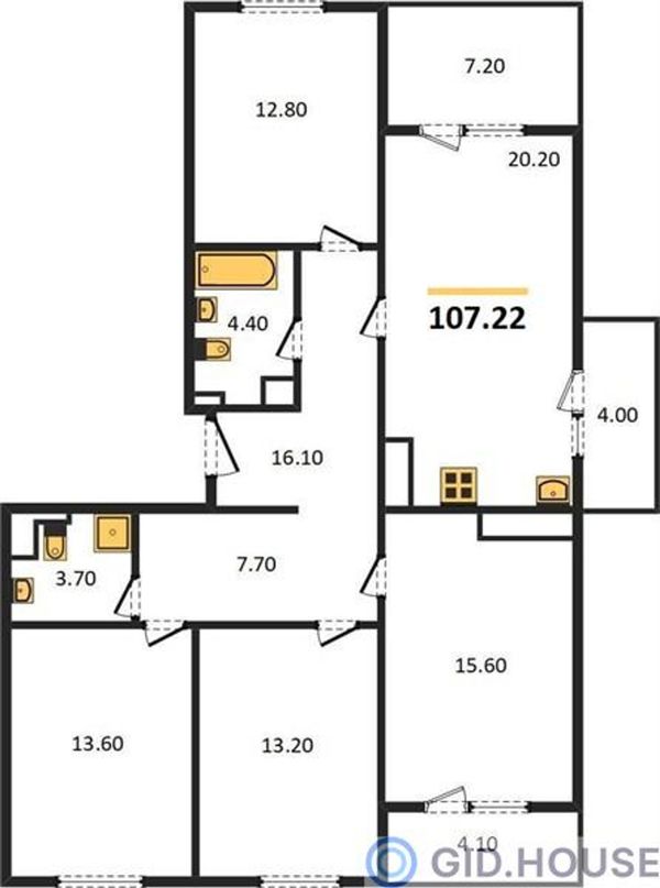 4+ комнатная — 107,22 м²