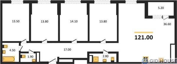 4+ комнатная — 121 м²