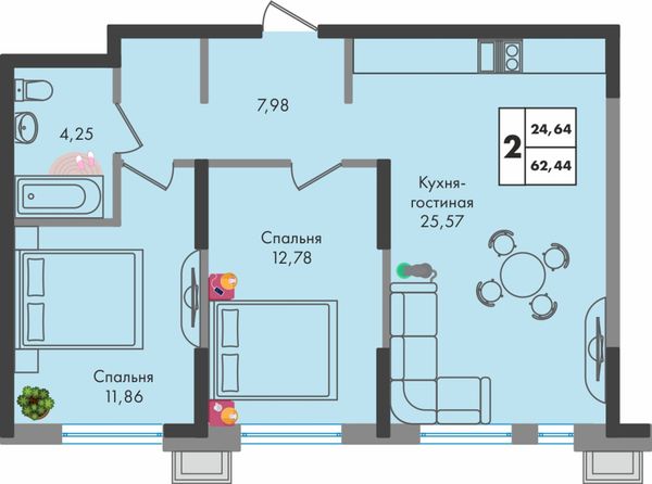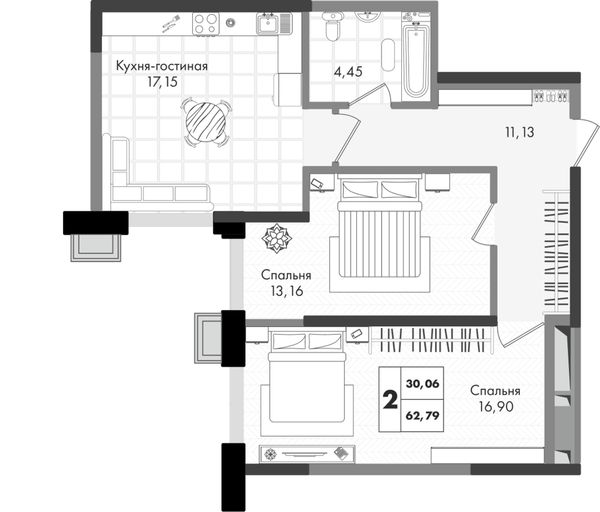 2-комнатная — 62,79 м²