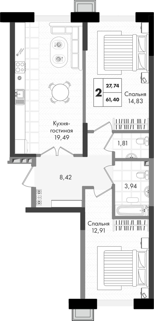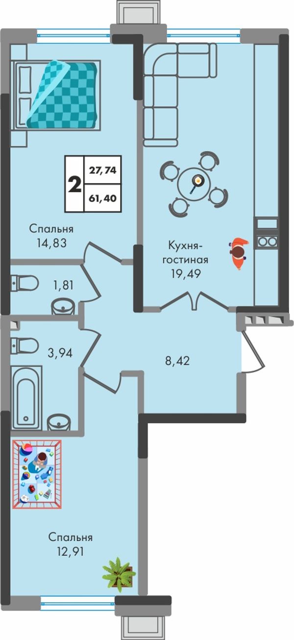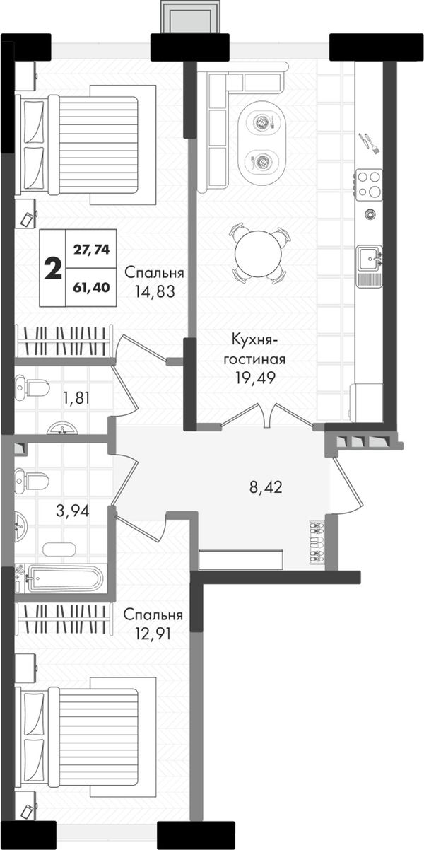 2-комнатная — 61,4 м²
