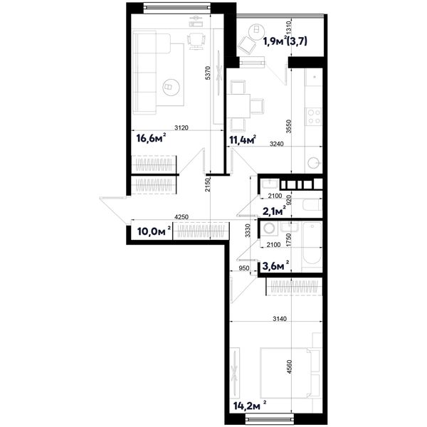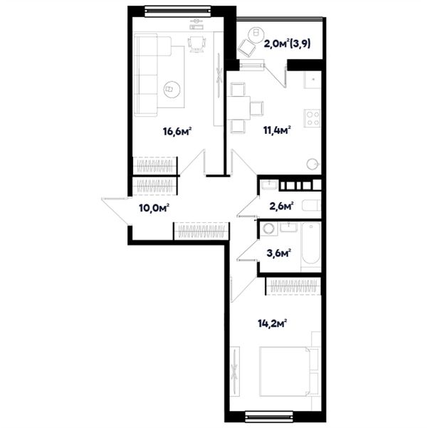2-комнатная — 60,4 м²