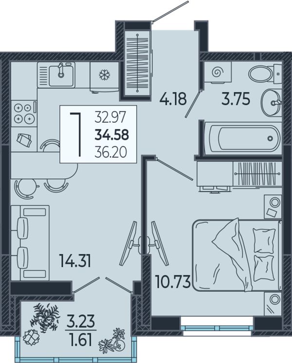 Купить однокомнатную квартиру в ЖК «Эстет» в Краснодаре