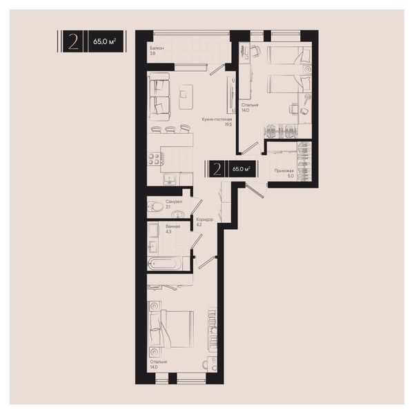 Купить двухкомнатную квартиру в ЖК «Эрмитаж» в Краснодаре