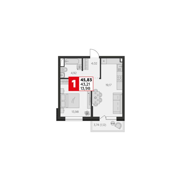 2-комнатная — 43,21 м²