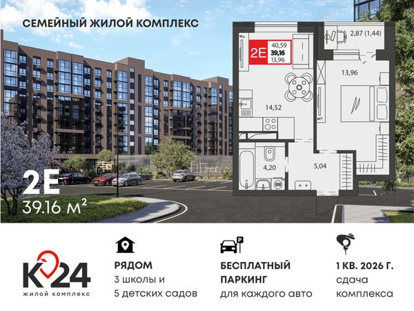 2-комнатная — 39,16 м²