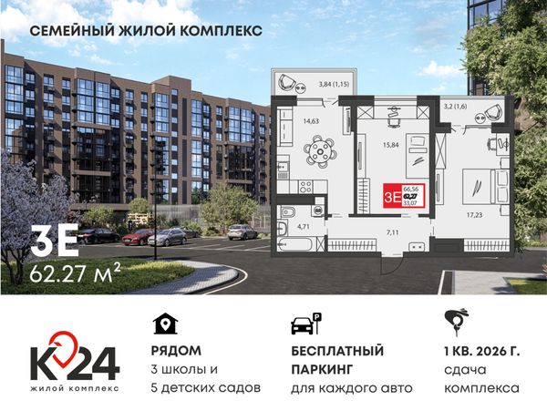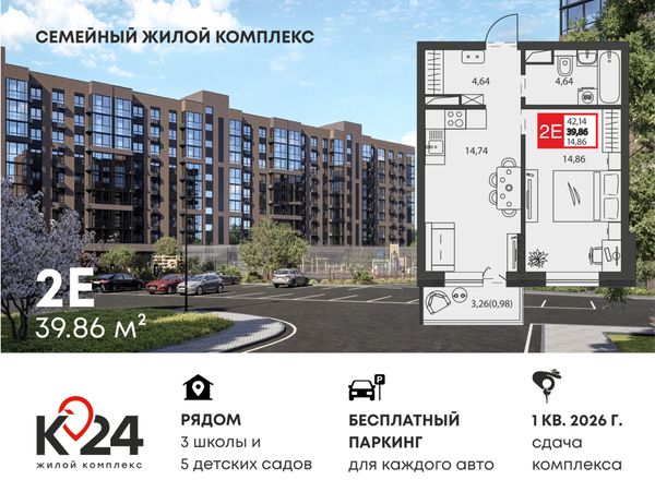Купить двухкомнатную квартиру в ЖК «К24» в Краснодаре