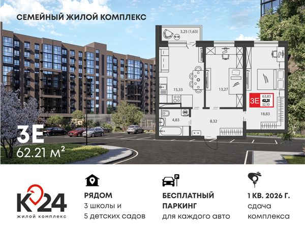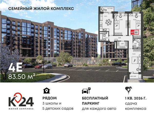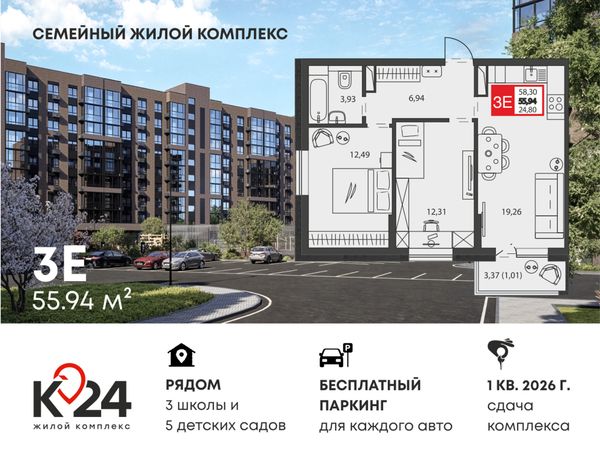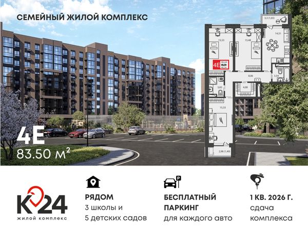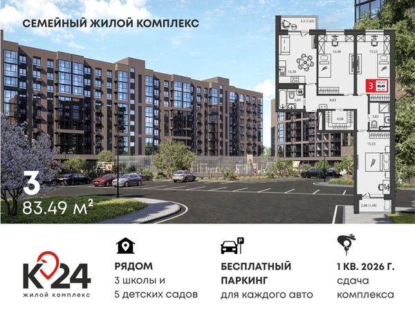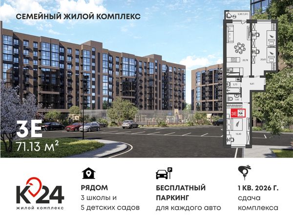 Купить трёхкомнатную квартиру в ЖК «К24» в Краснодаре