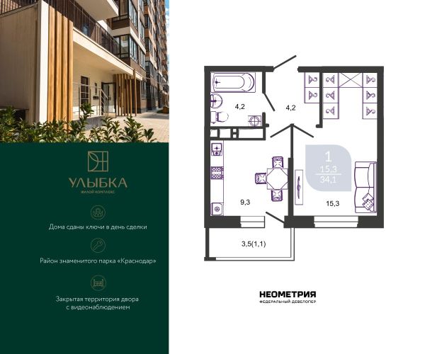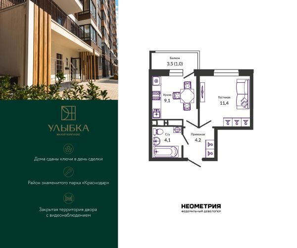 Купить однокомнатную квартиру в ЖК «Улыбка» в Краснодаре
