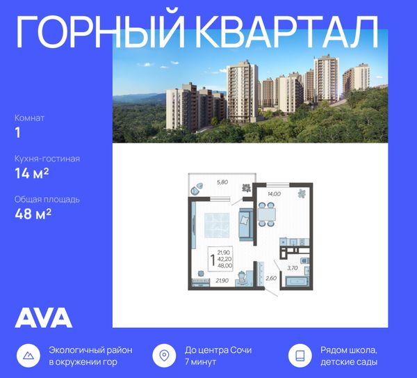 Купить однокомнатную квартиру в ЖК «Горный Квартал» в селе Раздольное в Краснодарском крае