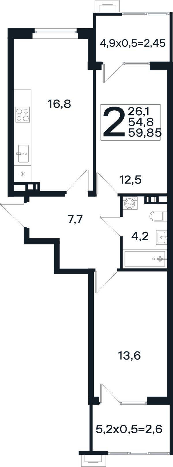 2-комнатная — 59,85 м²