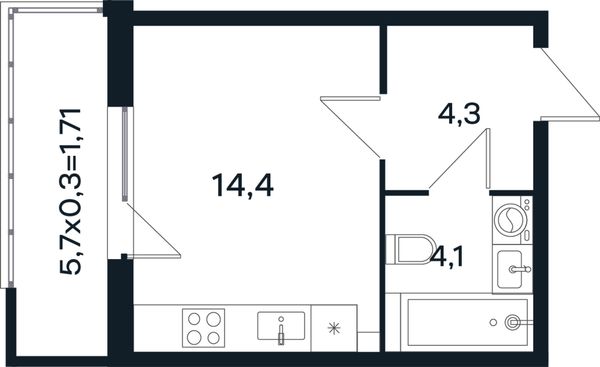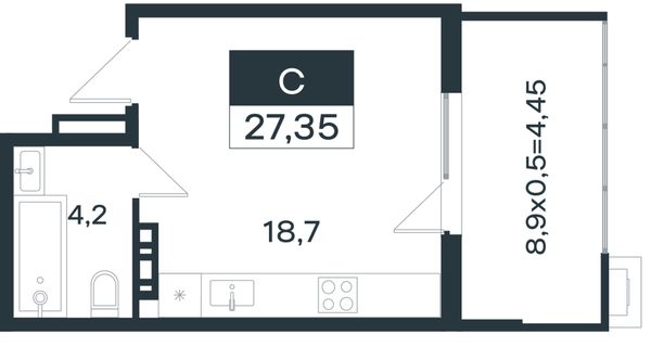 Студия27,35 м²Краснодарский край, Краснодар, улица имени Фёдора Елисеева