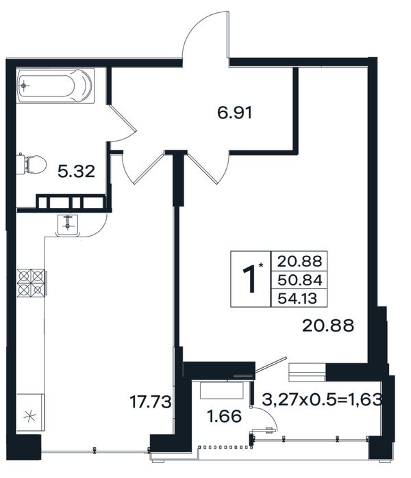 1-комнатная54,13 м²Краснодарский край, Краснодар, улица Шоссе Нефтяников, 26