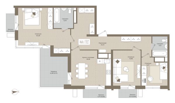 Купить трёхкомнатную квартиру в ЖК «АГАТ» в Мариуполе