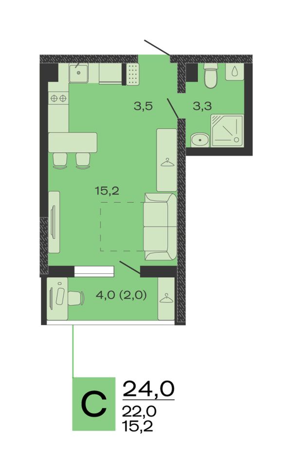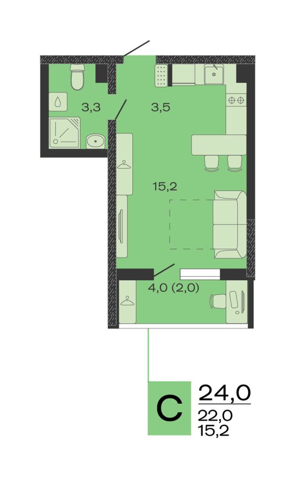 Студия24 м²Краснодарский край, станица Марьянская, 9