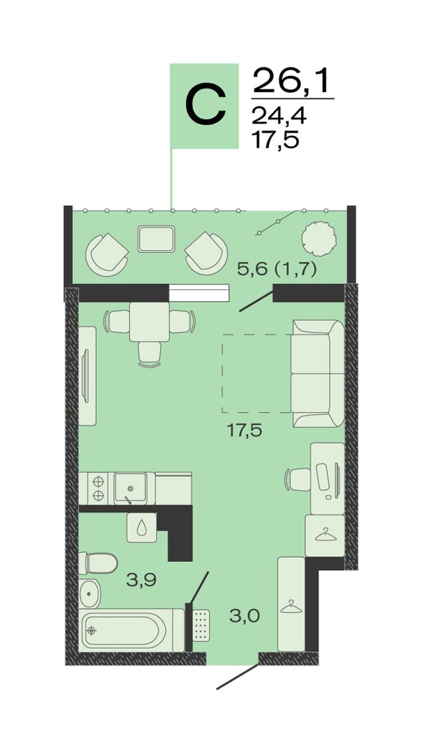 Студия26,1 м²Краснодарский край, станица Марьянская, 9