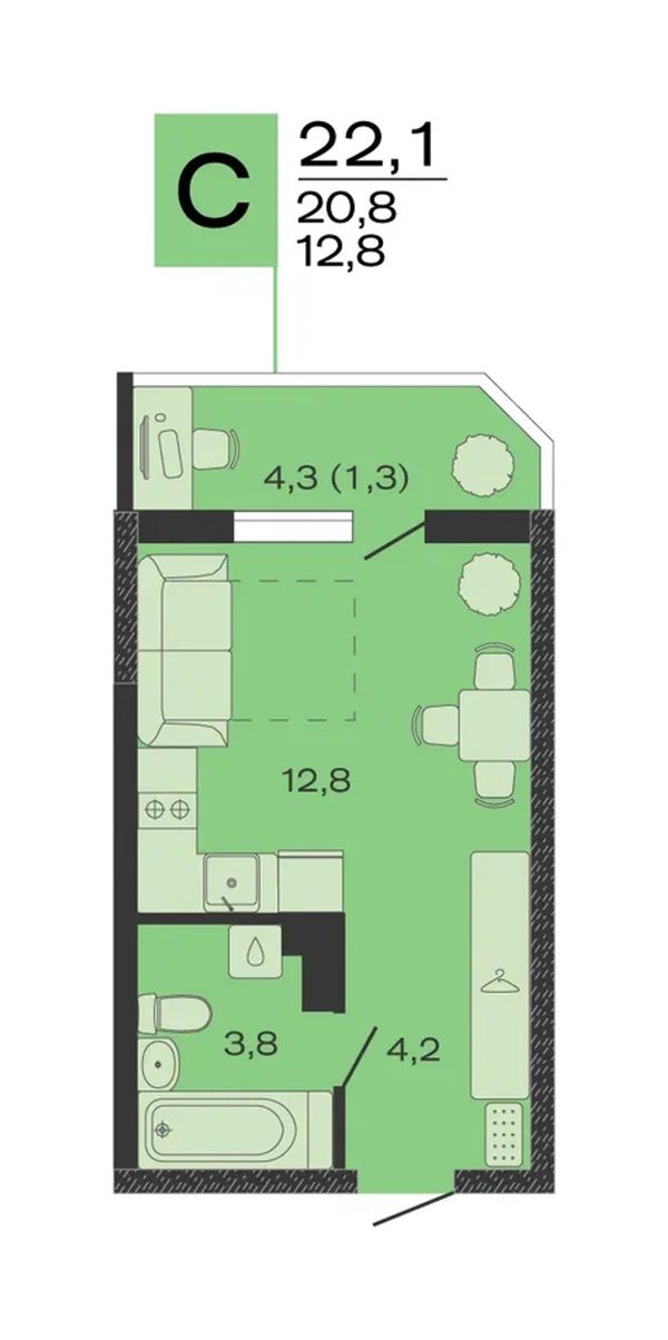 Студия22,1 м²Краснодарский край, станица Марьянская, 9