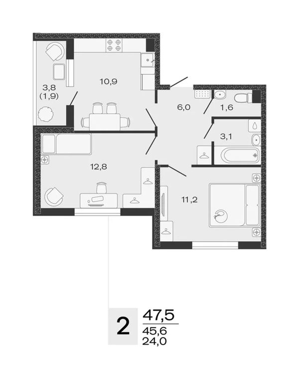 2-комнатная — 47,5 м²