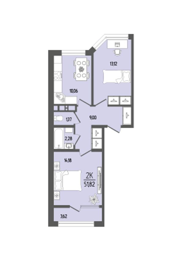 2-комнатная51,82 м²Республика Адыгея (Адыгея), аул Новая Адыгея, Береговая улица, 2/8