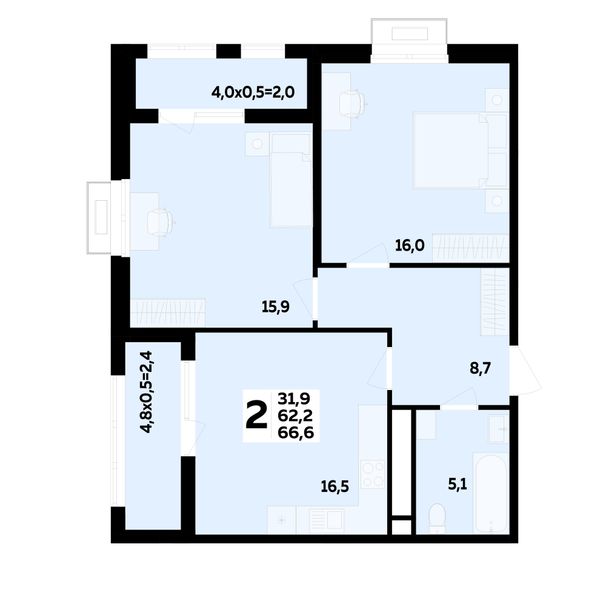 2-комнатная66,6 м²Республика Адыгея (Адыгея), аул Новая Адыгея, Бжедугская улица