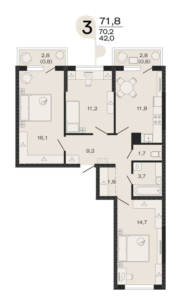 3-комнатная — 71,8 м²
