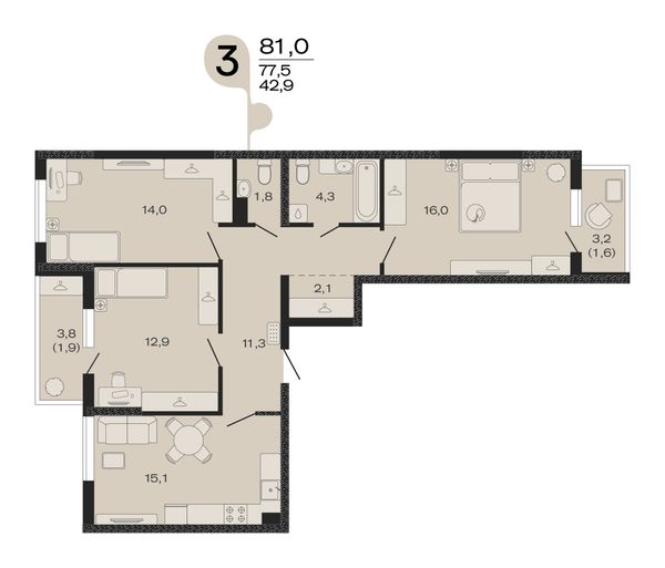 3-комнатная — 81 м²