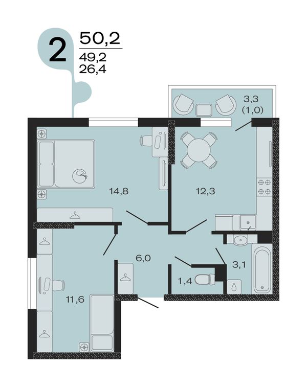 2-комнатная50,2 м²Краснодарский край, Новокубанск, Берёзовая улица