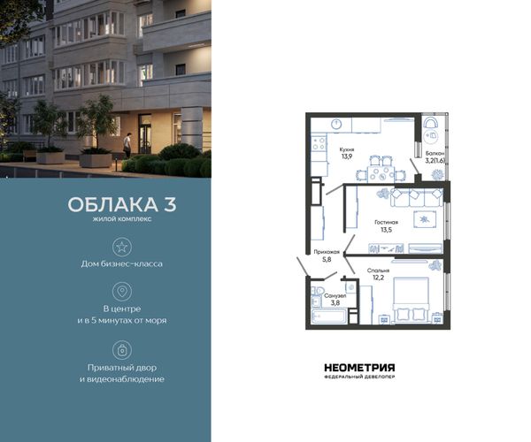 2-комнатная — 55,9 м²