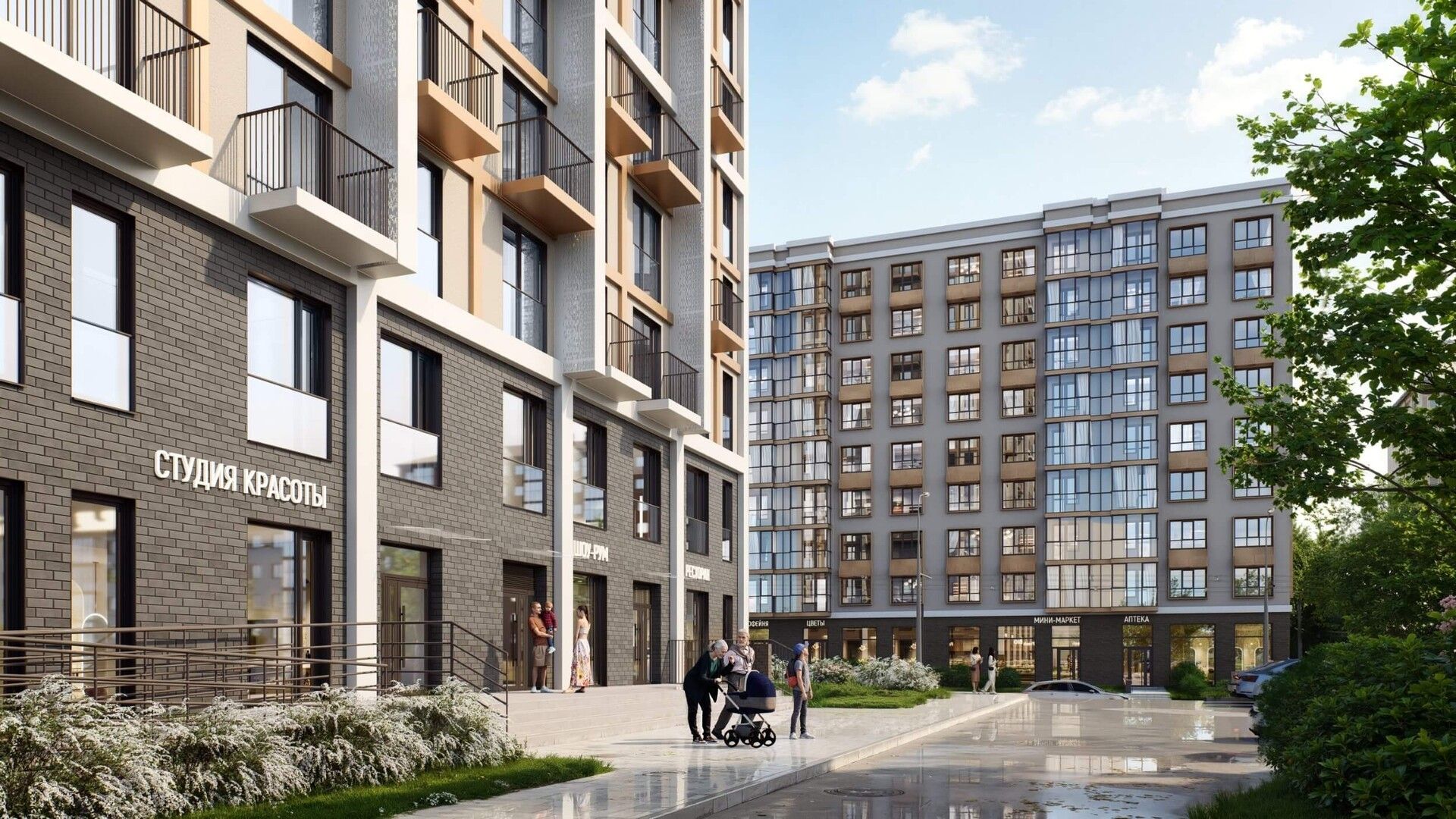 Дом построен по долговечной кирпично-монолитной технологии со сроком эксплуатации более 100 лет. Его фасад выполнен в элегантной палитре светло-серых и тёплых терракотовых оттенков, подчёркивая изысканный архитектурный облик. Первые два этажа для коммерции выделены контрастным графитовым оттенком, гармонично дополняя общий дизайн здания.