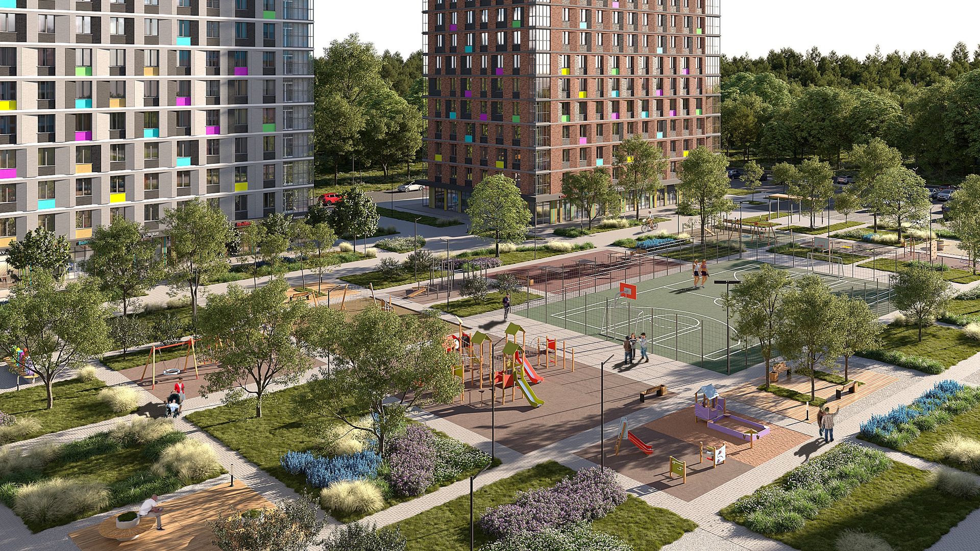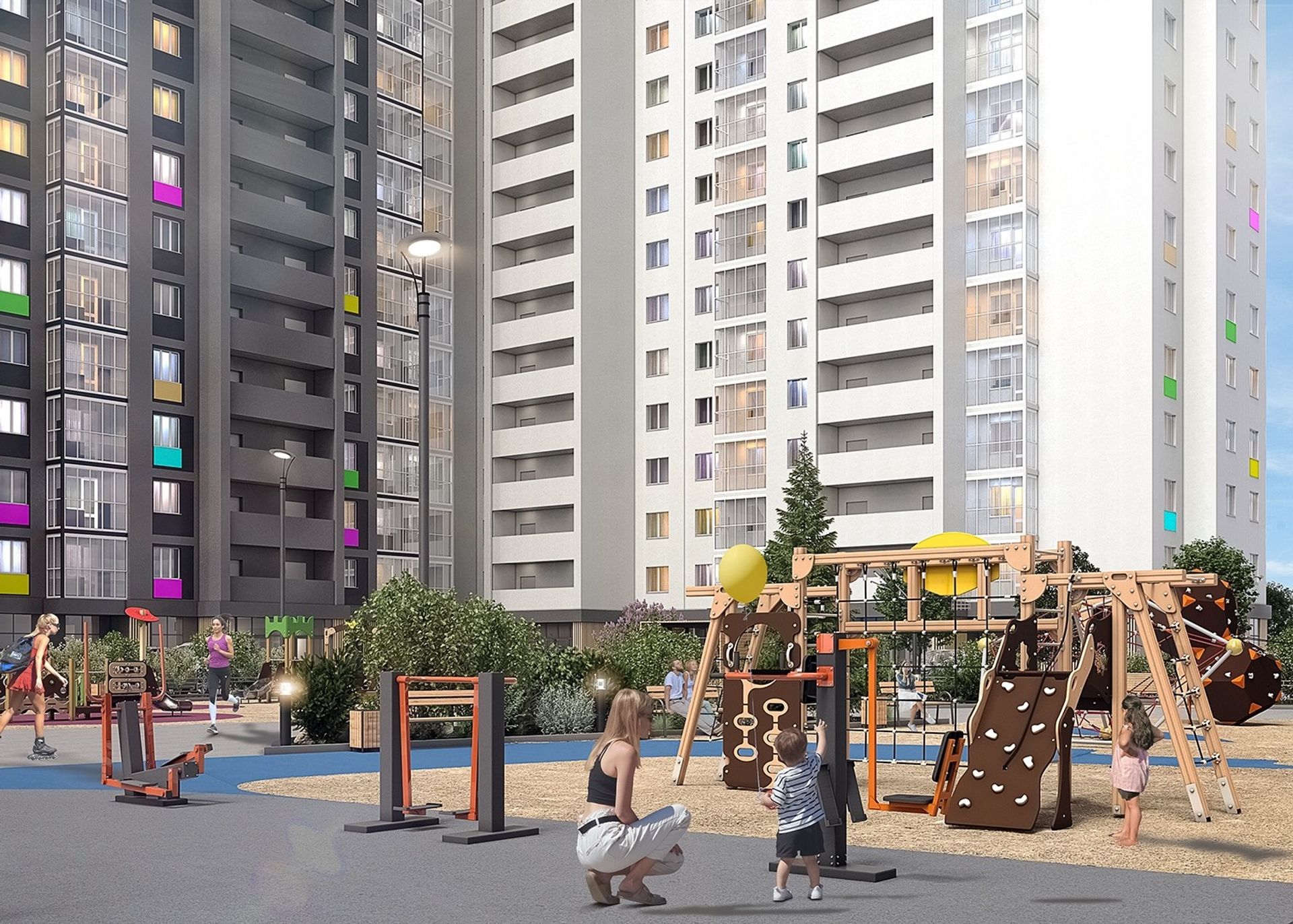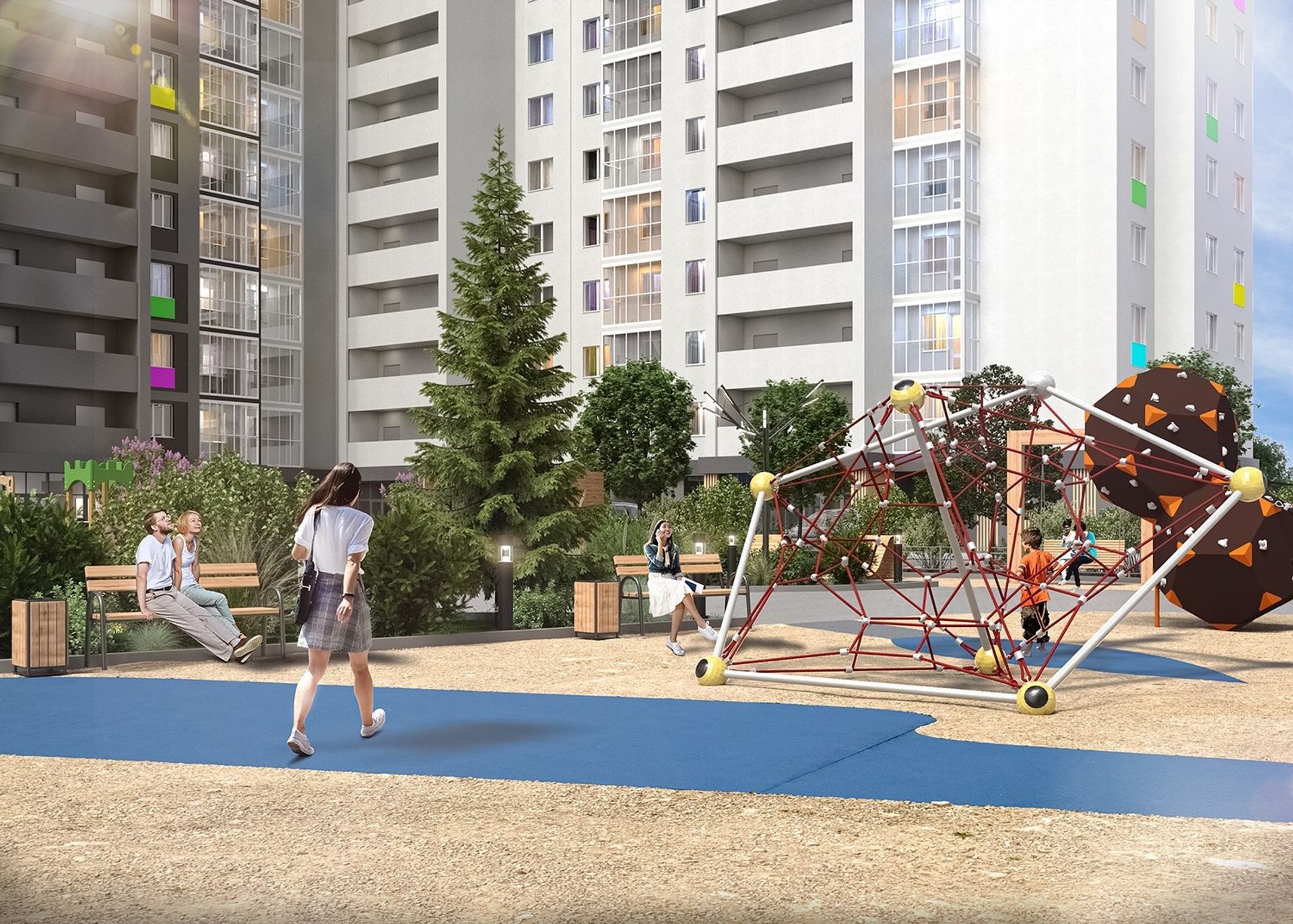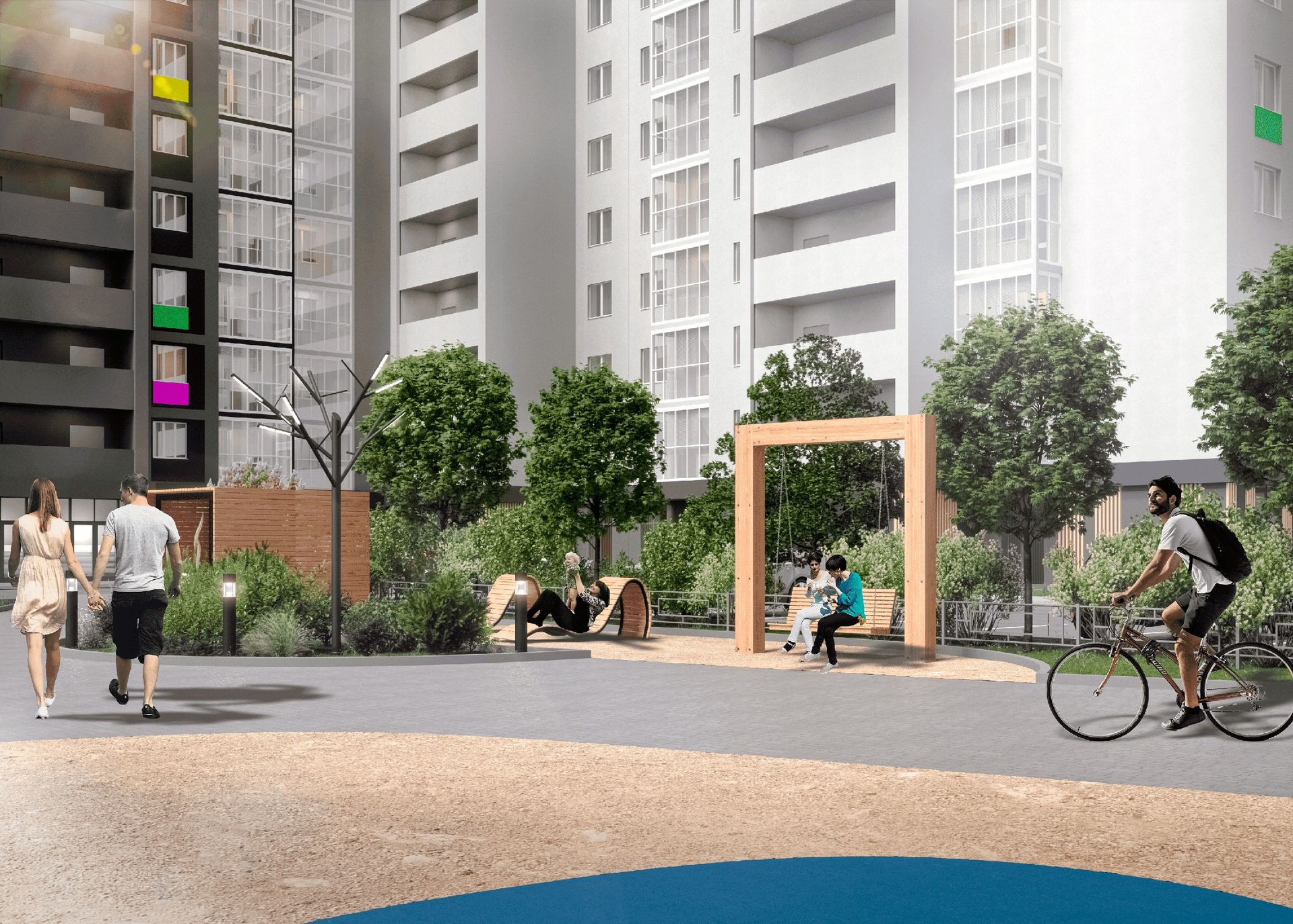 Двор «Акварели» задуман как пространство для всех поколений. Здесь можно гулять с детьми, заниматься спортом, отдыхать с соседями или просто наслаждаться покоем.