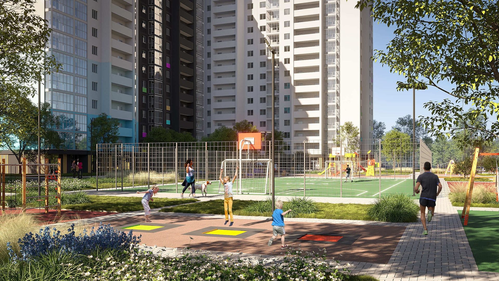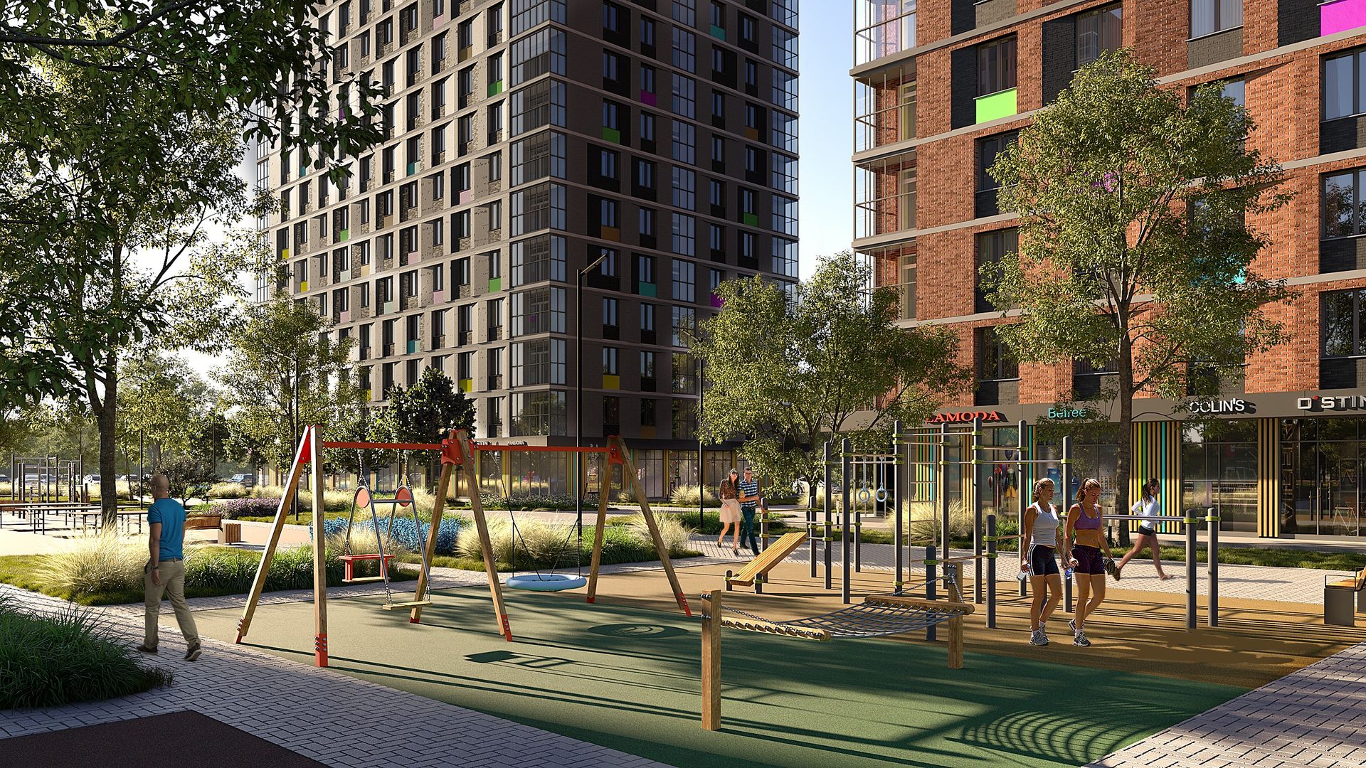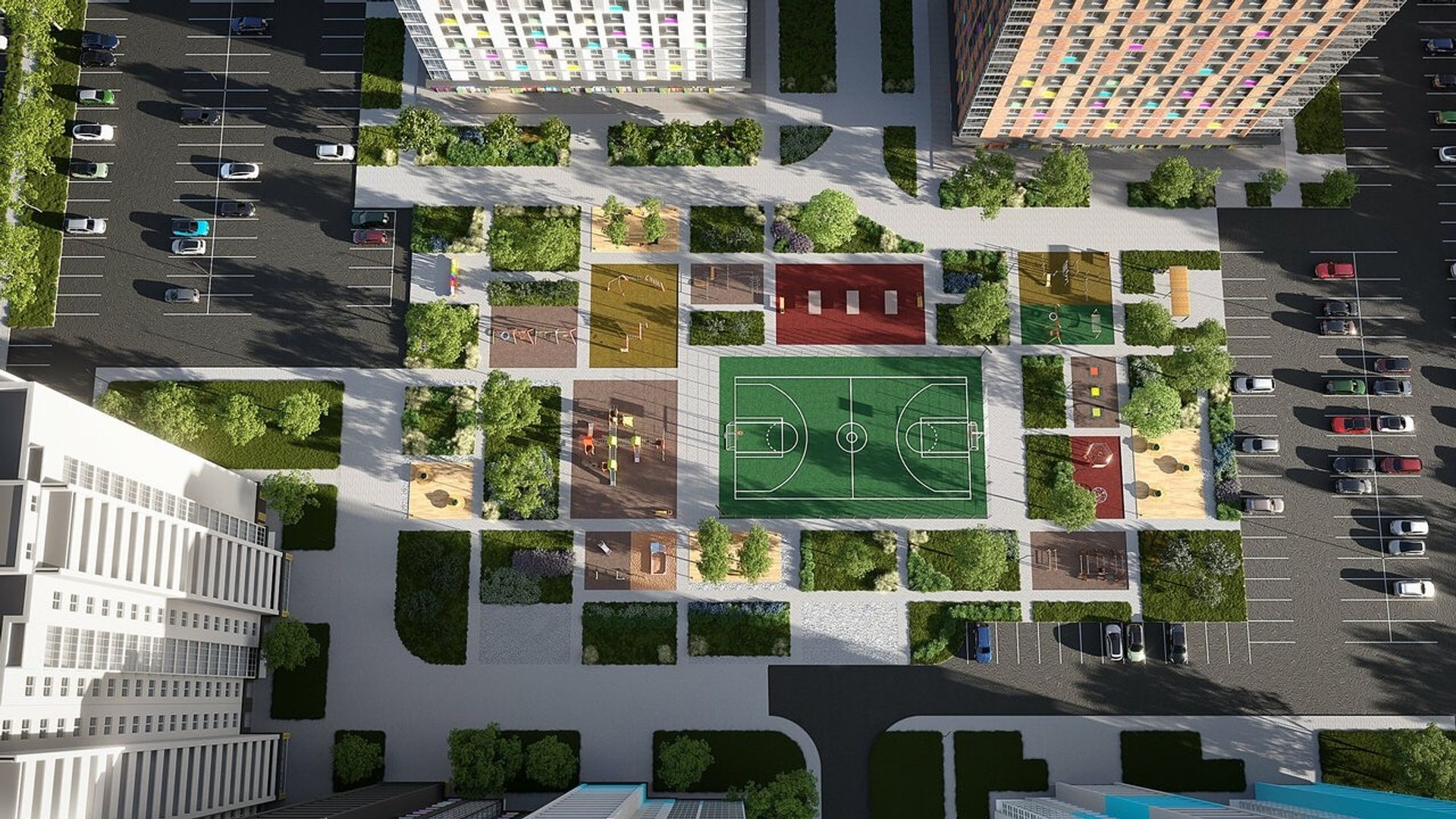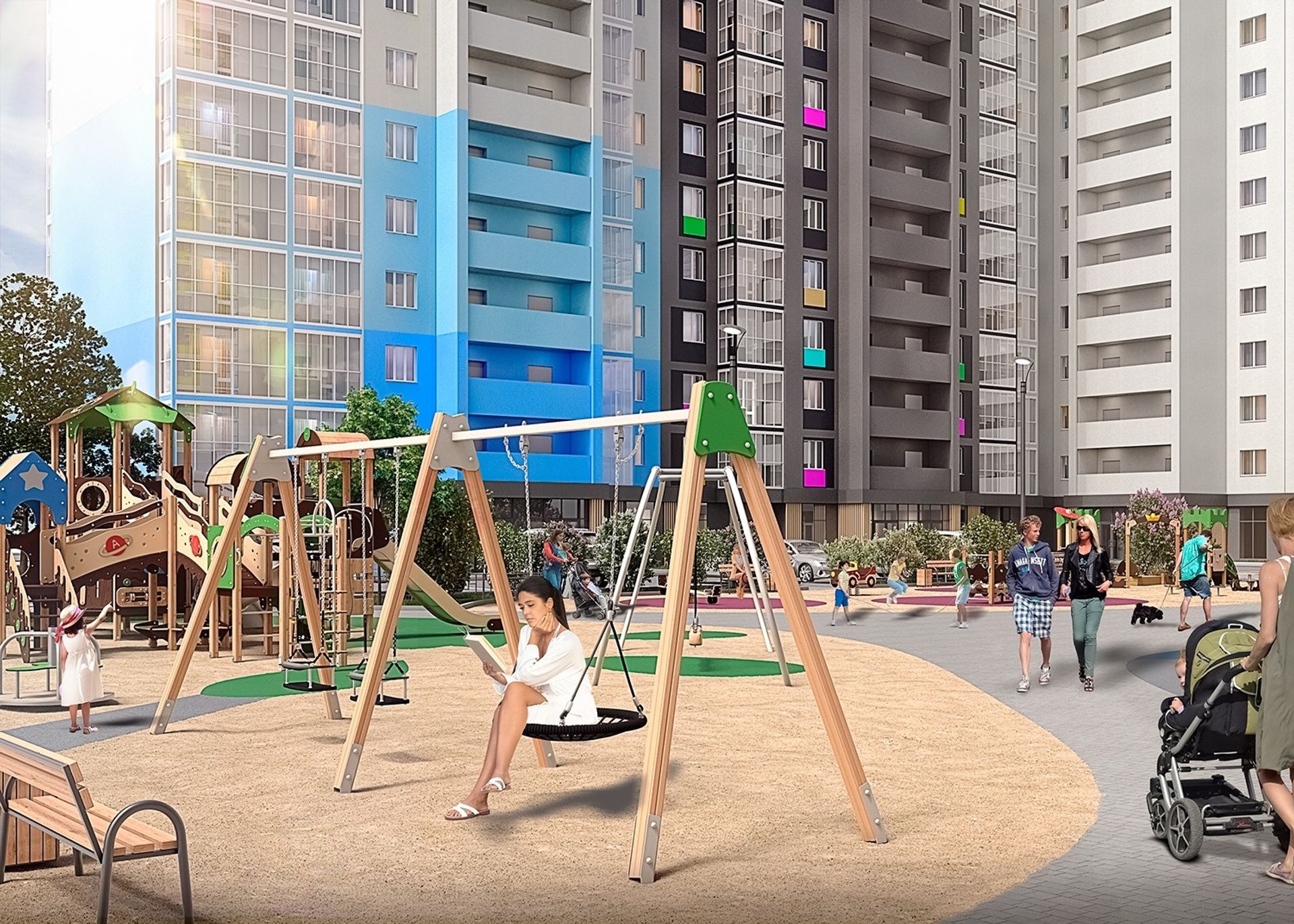 Двор «Акварели» задуман как пространство для всех поколений. Здесь можно гулять с детьми, заниматься спортом, отдыхать с соседями или просто наслаждаться покоем.
