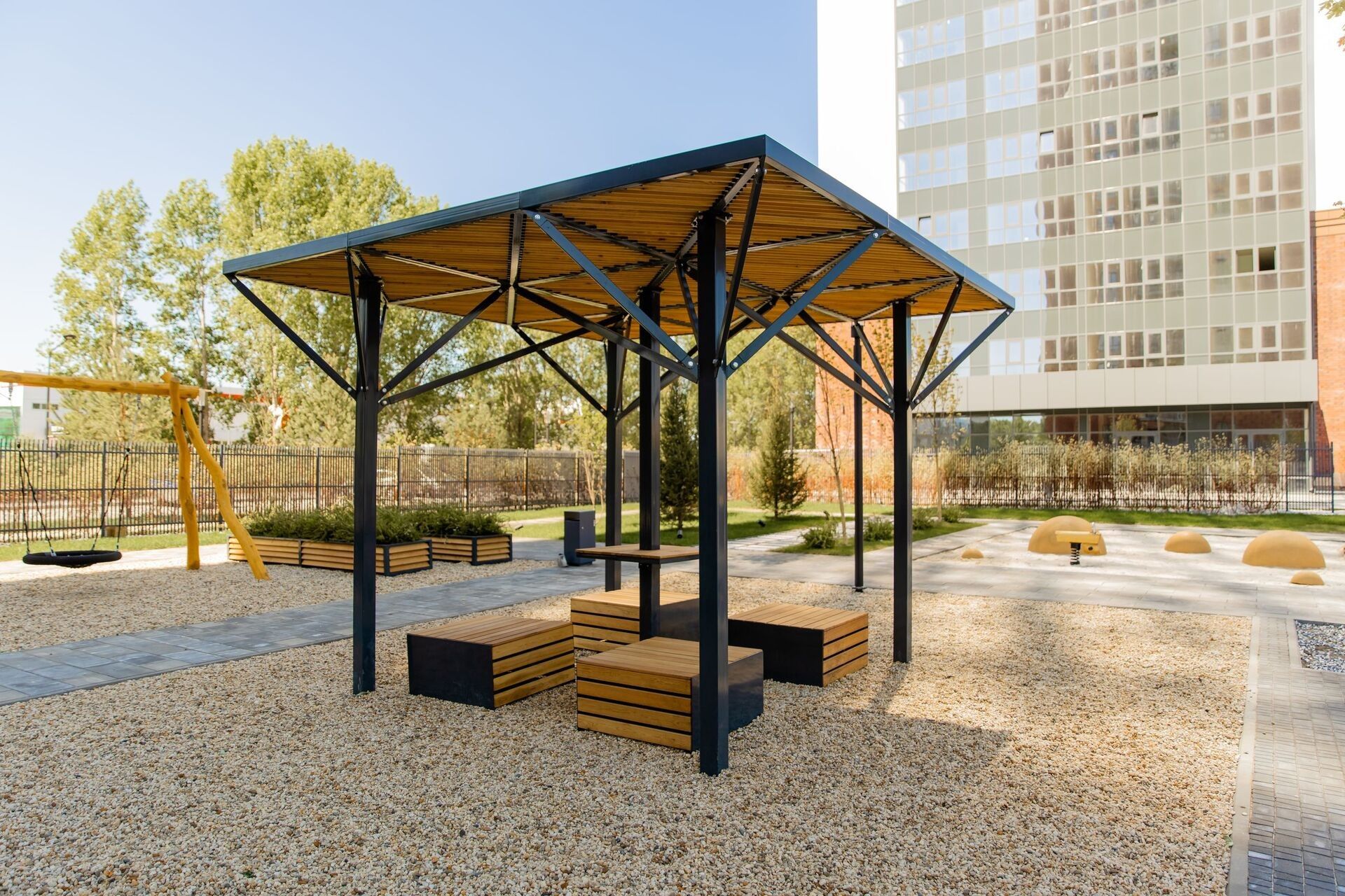 Вместо обычного двора — парк с продуманным рельефом и сценариями: