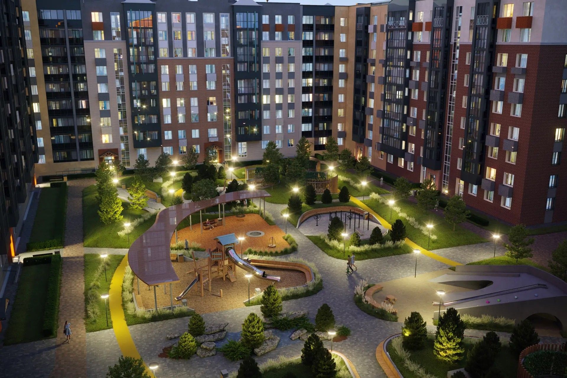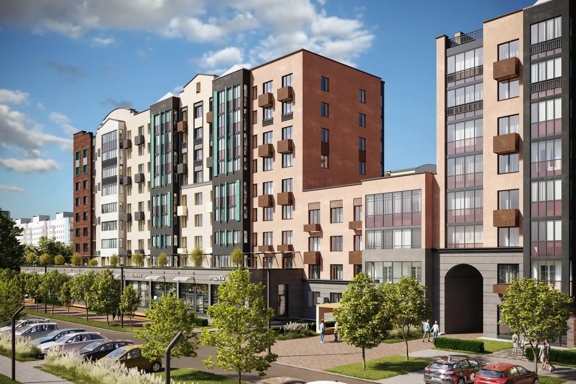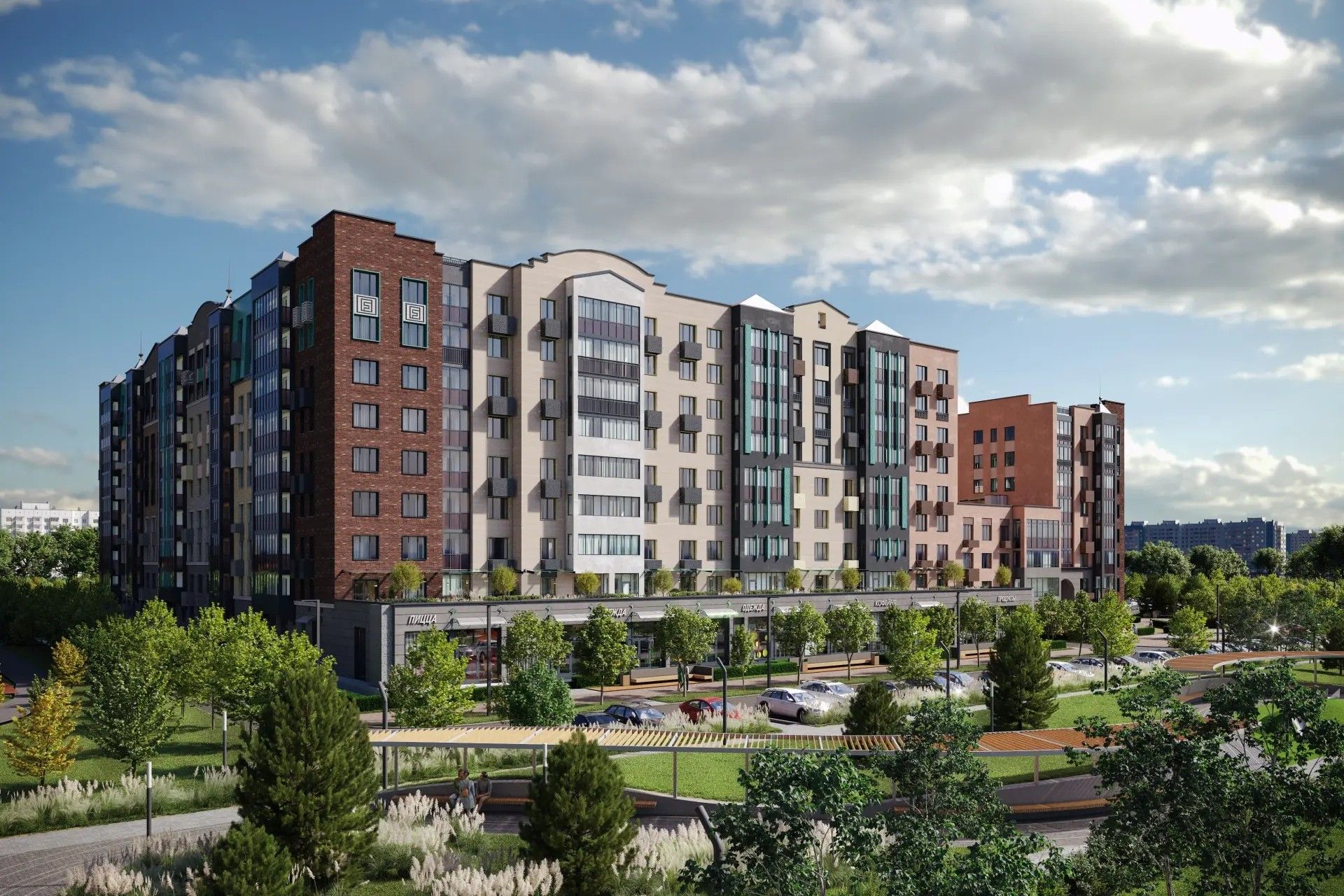 - Переменная этажность формирует уютную городскую ткань — соразмерную человеку, где есть и простор, и камерность.