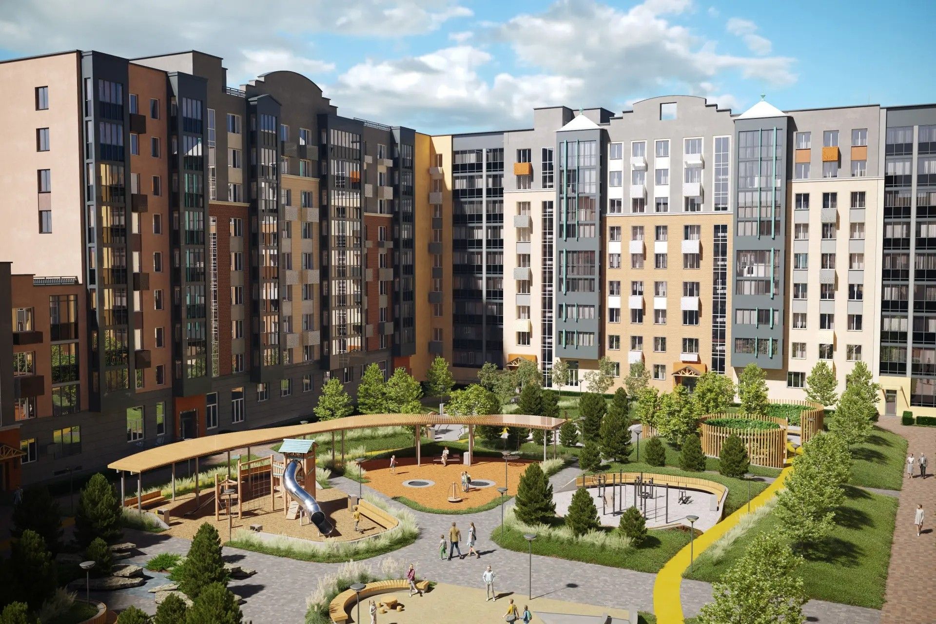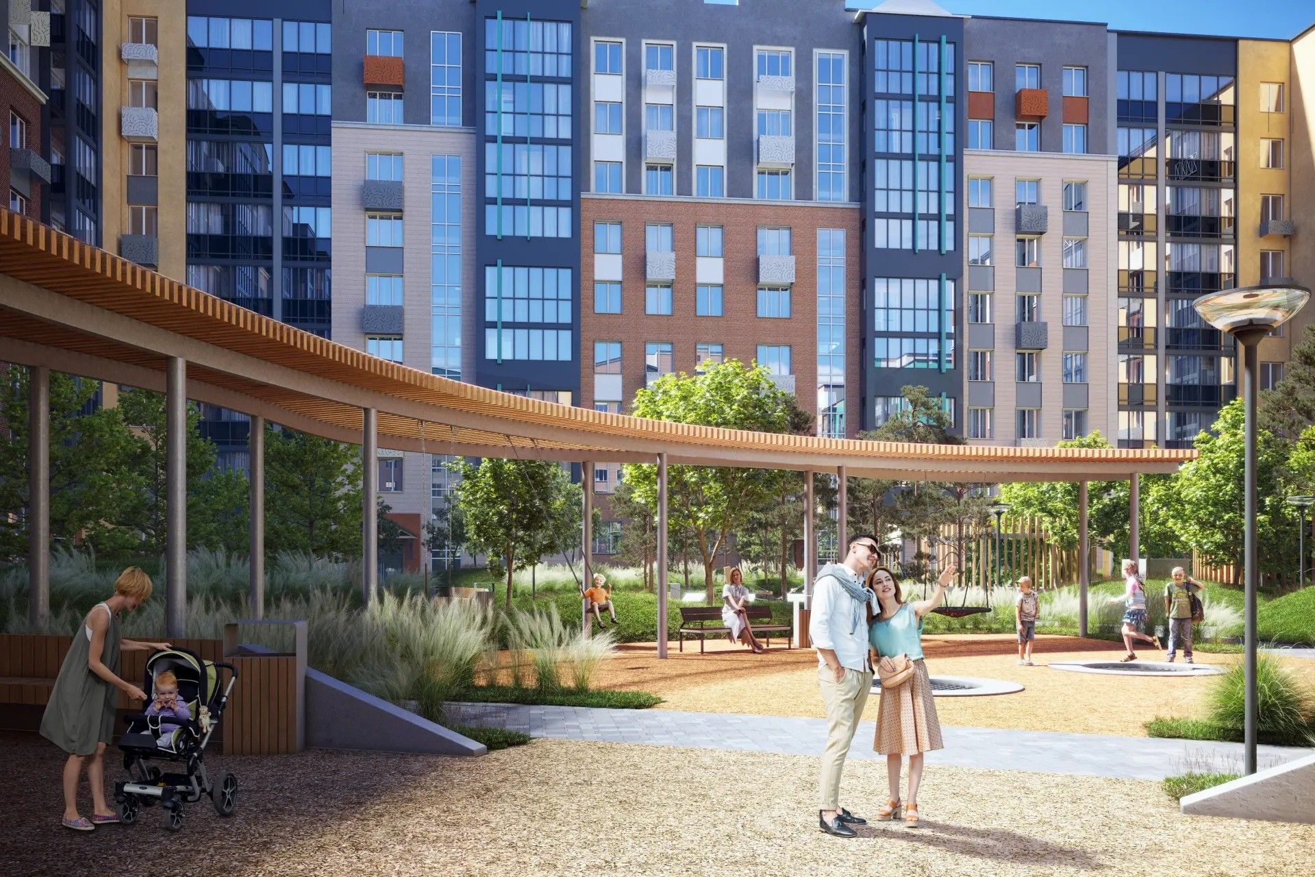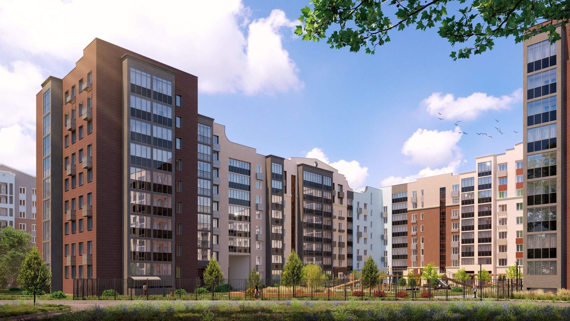 - Переменная этажность формирует уютную городскую ткань — соразмерную человеку, где есть и простор, и камерность.